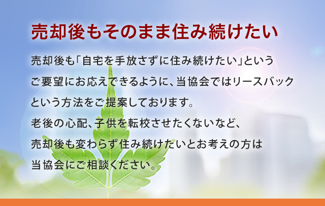 ローンが支払えず住み慣れた我が家にどうしても住み続けたい、思ったより退職金や年金が少なく今後の生活に不安、自宅を残しても相続させる人がいない、子供を転校させたくない。そんな方はリースバックをおすすめします。